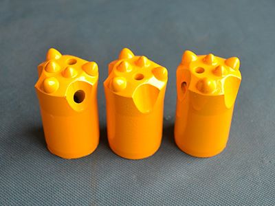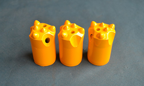 3、錐度聯(lián)接柱齒鉆頭。錐度連接柱齒鉆頭主要是與風(fēng)動(dòng)鑿巖機(jī)及錐度桿配套使用的一種鉆頭,通過(guò)錐度與鉆桿聯(lián)接,進(jìn)行鑿孔作業(yè),主要應(yīng)用于礦山的二次破碎、錨桿的支護(hù)、巷道的掘進(jìn)等領(lǐng)域。具有良好的排粉效果并且破碎能力強(qiáng),鑿巖速度快。