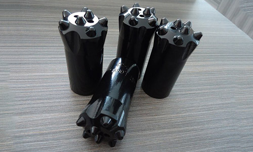 球齒系列鉆頭鈍化使用周期長(zhǎng),其不磨壽命約為同直徑刃片頭鉆頭磨次壽命的5-6倍,有利于節(jié)省輔助工時(shí),減輕工人體力勞動(dòng)和加快工程速度。因此不同直徑的錐度連接和螺紋連接球齒鉆頭被廣泛應(yīng)用在各類硬脆巖石中配合鉆車鑿巖。柱齒鉆頭與傳統(tǒng)的片狀鉆頭相比具有修磨周期長(zhǎng),鉆鑿速度快的特點(diǎn)。